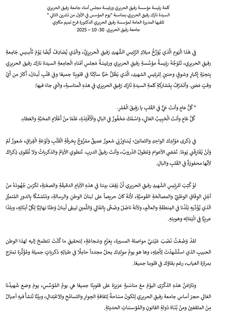Message from Mrs. Nazek Rafik Hariri