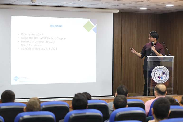 Sammy explained that the ACM RHU Student Chapter is a great platform to enhance the skills and network with like-minded individuals for those interested in pursuing a career in computing.