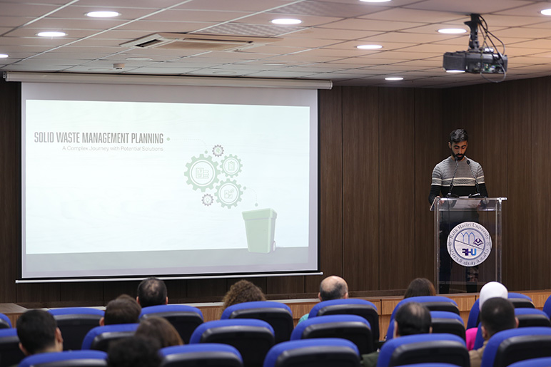 During the seminar, Eng. Srour shared his knowledge in the field of Solid Waste Management with the students. His presentation focused on providing adequate planning and consideration to manage Solid Waste. He also presented the students with information about the different system components ranging from storing, transferring, treatment, and disposal.