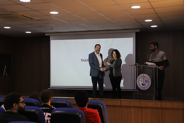 At the end of the seminar, the RHU ASCE presented Engineer Srour with a plaque as a token of appreciation for sharing his knowledge and experience in solid waste management with RHU students.