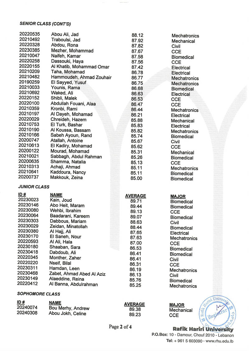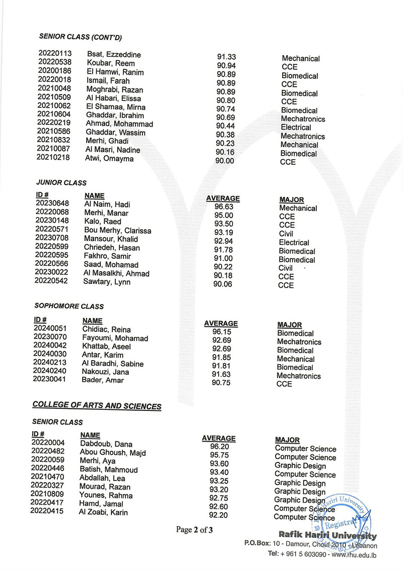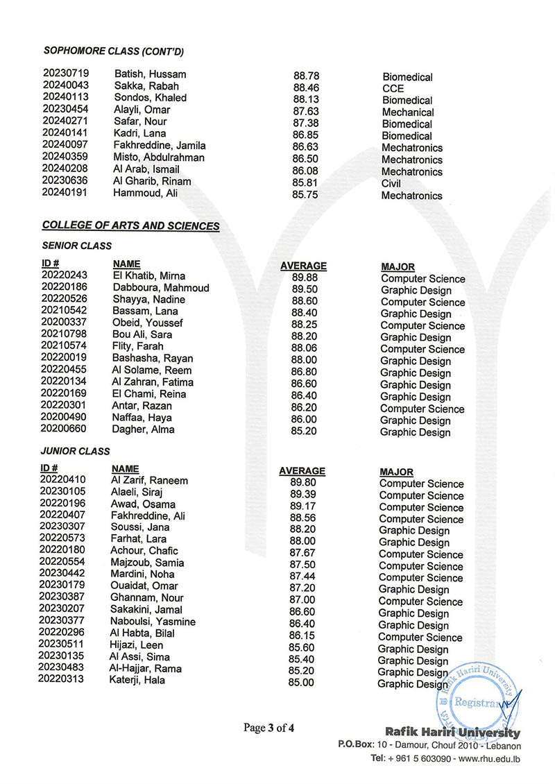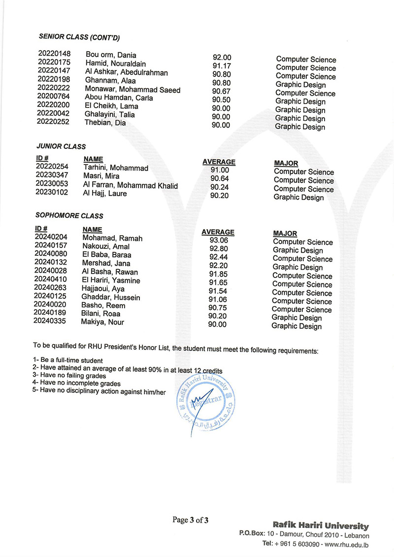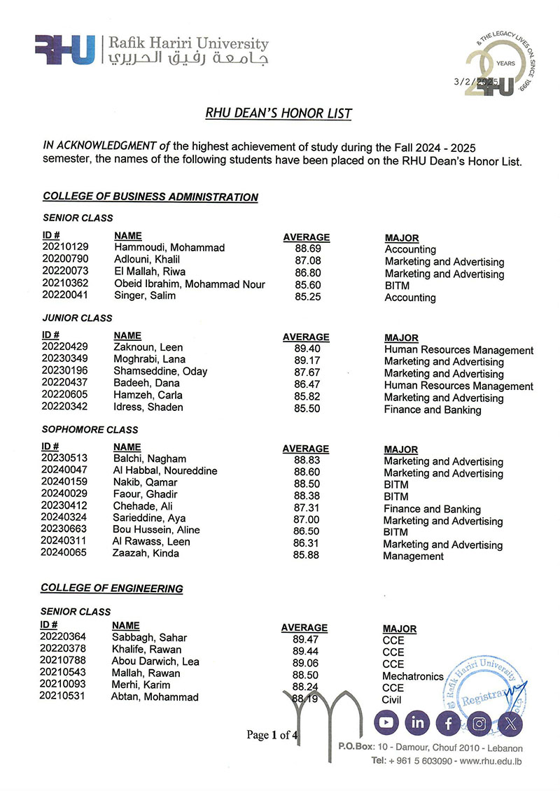 The RHU Registrar's Office named 208 students to the President's and Dean's Honor Lists to recognize their academic excellence in the Fall 2025 semester.