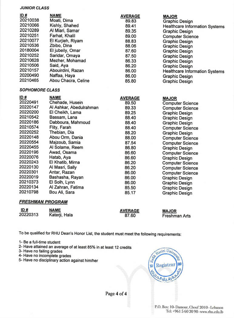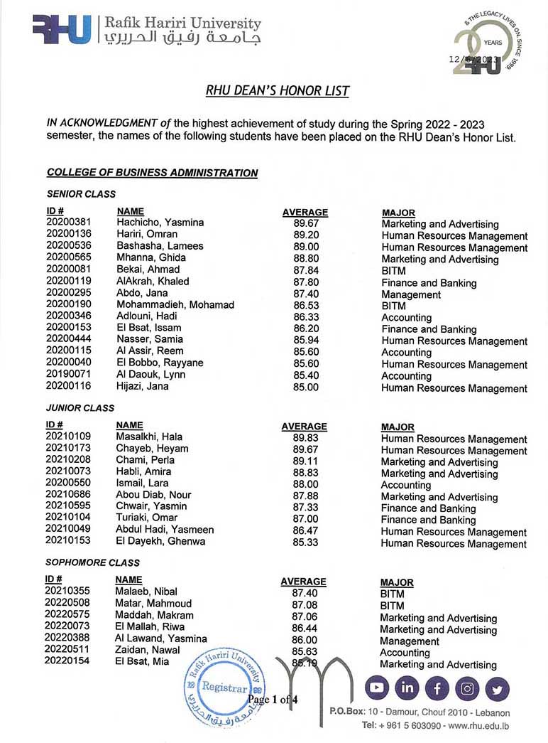 The RHU Registrar's Office named 221 students to the President's and Dean's Honor Lists to recognize their academic excellence in the Spring 2023 semester.