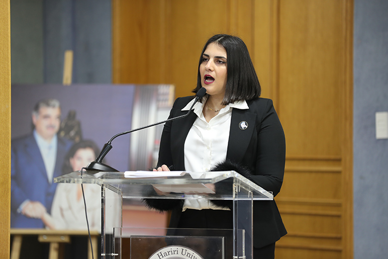 "On behalf of our Chairperson of the Board of Trustees, Mrs. Nazek Rafik Hariri, I stand before you to commemorate the assassination of our founder, Prime Minister Rafik Hariri," Dr. Ladki stated. "Mrs. Hariri, as a staunch supporter of education, remains committed to our founder’s educational mission. She is determined to educate and empower the young people of this country to become free thinkers and transformational agents capable of serving their country and advancing their communities."