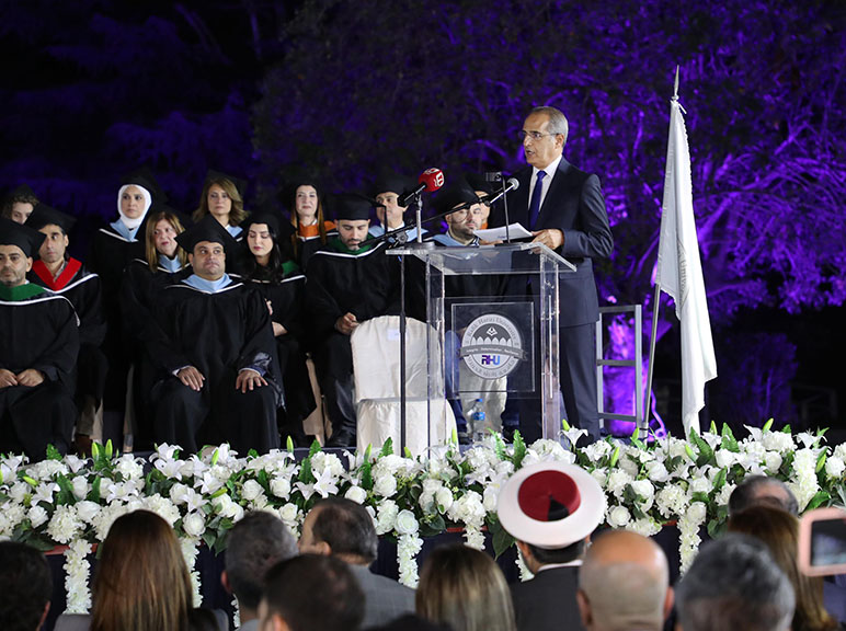 The event was gracefully hosted by Mr. Yazbek Wehbe, a journalist and news anchor at LBCI. It was attended by distinguished figures from academia, diplomacy, government, and civic life, including representatives of the Lebanese Presidency, the Grand Mufti of Lebanon, the Lebanese Armed Forces, the State Security Directorate, and ambassadors of Palestine and Tunisia, among others. Members of the RHU Board of Trustees, the Board of International Advisors, and the extended RHU community, along with faculty, staff, students, alumni, and parents, were also present.