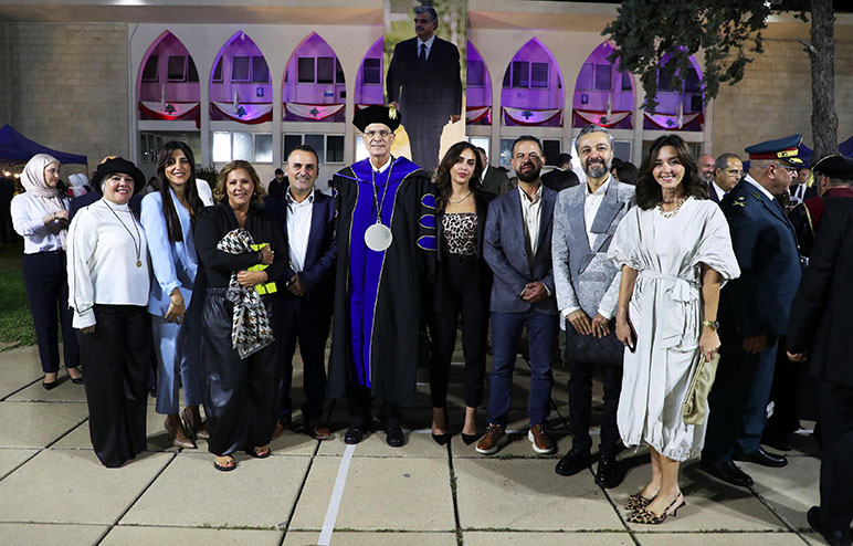 The event was attended by prominent official, academic, and diplomatic figures, including representatives of the Presidency of the Republic, Dar Al-Fatwa, the Lebanese Army, the General Directorate of Internal Security Forces, and the General Directorate of State Security, as well as the Ambassadors of Palestine and Tunisia, members of the University’s Board of Trustees and Board of International Advisors, and a large gathering of faculty, students, alumni, and their families.