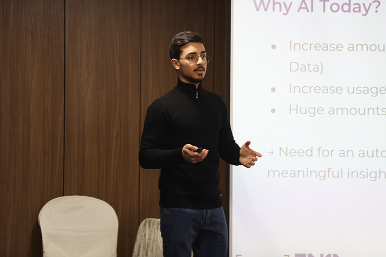 The event began with a vibrant bake sale by the AI Club, setting an energetic tone. At 11:00 AM, Mr. Ali Kanbar, ZAKA Technical Ambassador, delivered a lecture on AI fundamentals, covering Machine Learning, Deep Learning, and Data Science. His talk provided groundbreaking insights into AI’s current landscape and its future impact. This was followed by engaging panel discussions on AI Ethics, Business Applications, Healthcare, and emerging trends. RHU students actively contributed, sharing insights on AI’s evolving role.