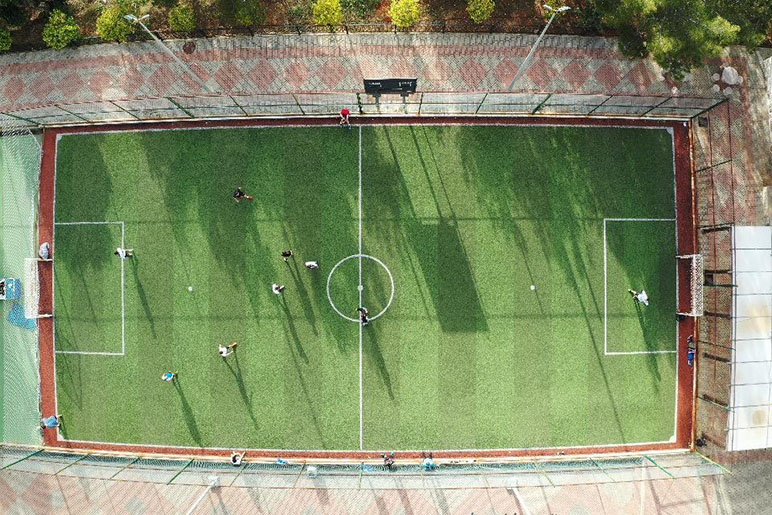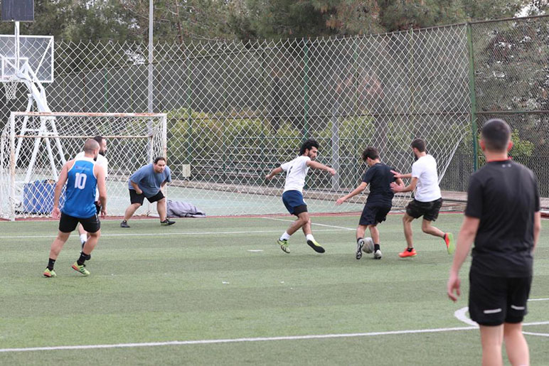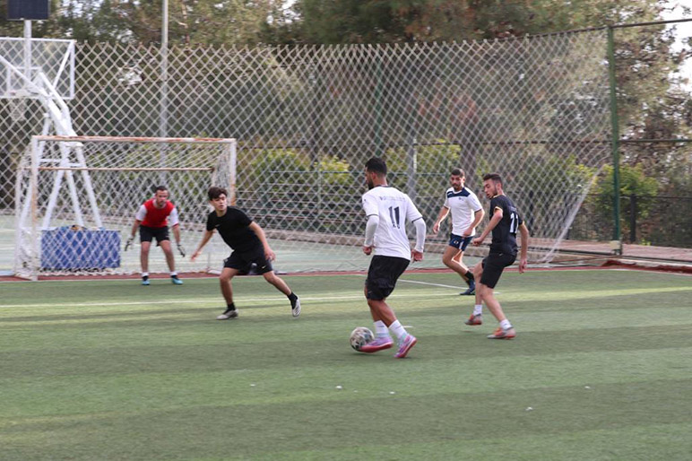 The RHU alumni former varsity players Ibrahim El Chami, Ali Saad, Amir Abou Fakher, Omar Dimassi, Nadim Antar, and Rayan Zahran returned to RHU for a friendly football game against the current varsity team on the afternoon of April 12, 2023.