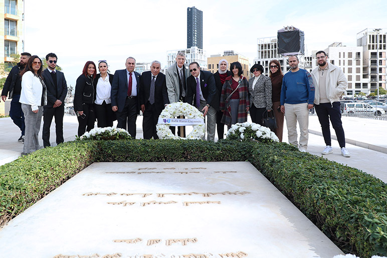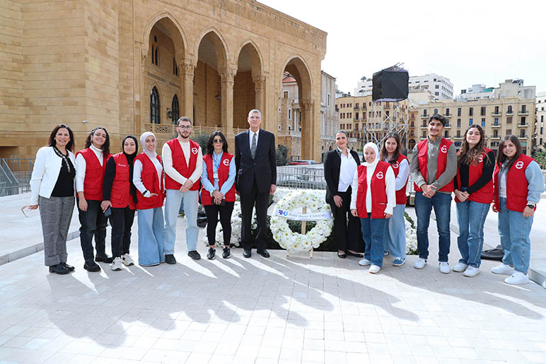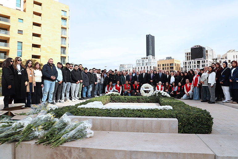 The ceremony concluded with a collective reaffirmation of pride in Martyr Hariri’s legacy and a shared commitment to uphold his values. After the on-campus memorial, the RHU community visited the resting place of Martyr Rafik Hariri in Downtown Beirut, where members laid a wreath of flowers in reverent tribute, reaffirming their respect and ongoing dedication to his legacy.