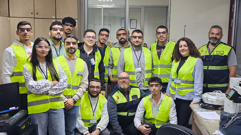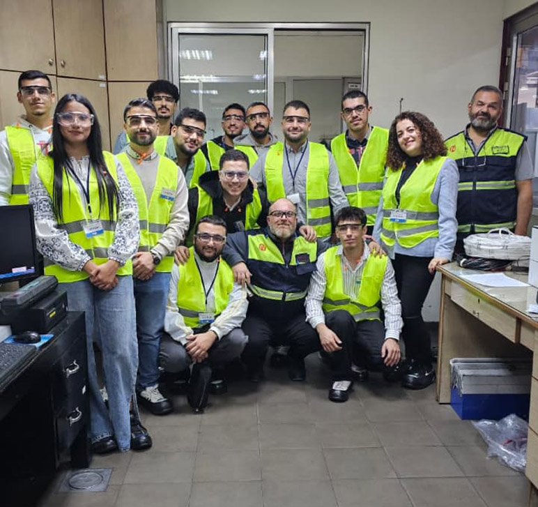 During the tour, students visited all the major departments of the facility. The Liban Cables team offered detailed explanations of the entire cable manufacturing process, from wire pulling, plating, coating, and insulation to quality testing and final packaging.