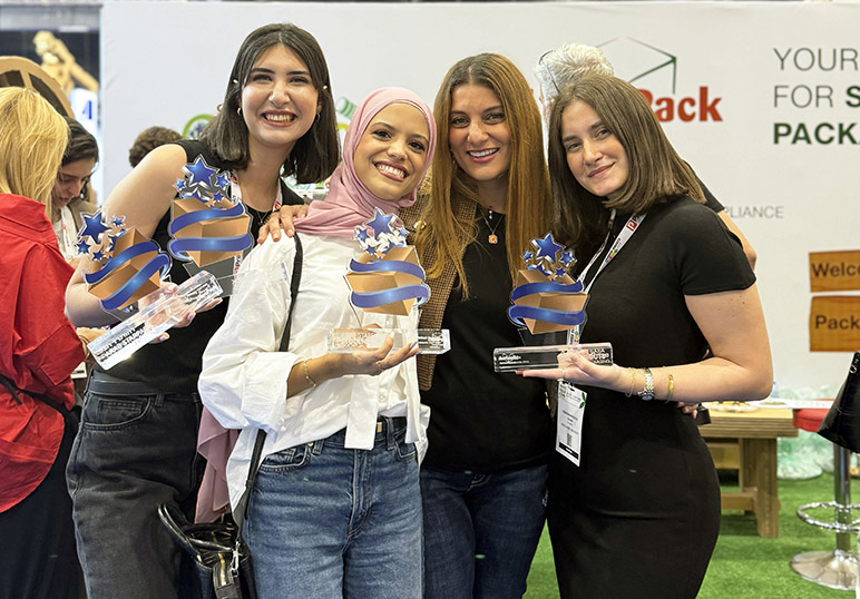 RHU students excelled in the Visual, Structural Packaging, and Save the Food categories, reaffirming the university’s leadership and innovative spirit in design education across the region. This year’s winners are Theresia Dagher (First Prize, Visual Design Packaging), Reina El Chami (Second Prize, Visual Design Packaging), Lea Abdallah (Third Prize, Visual Design Packaging), Sara Bou Ali (Third Prize, Structural Packaging), and Alaa Ghannam (Second Prize, Save the Food Category).