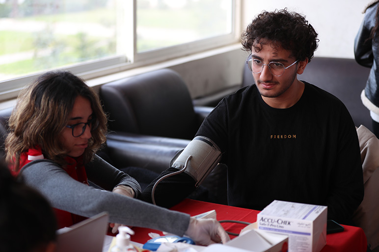 The RHU First Aid Club, in collaboration with the university infirmary, Hammoud Hospital University Medical Center, and the Donner Sang Compter (DSC), organized a blood drive on Thursday, January 25, 2024, from 10 a.m. to 2 p.m. The event was successful, with over 40 volunteers donating blood, potentially saving many lives.