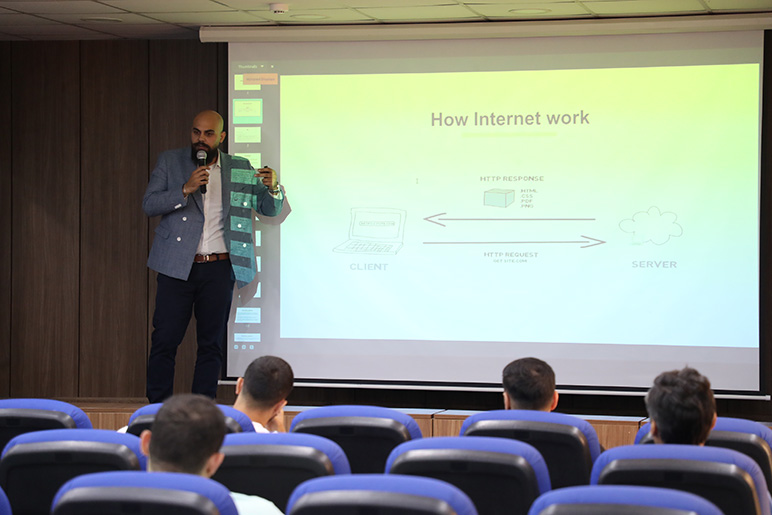 The IEEE RHU Student Branch in the College of Engineering, in collaboration with the EMBS RHU Student Branch and the WIE RHU Society, celebrated IEEE Day 2025 on October 7 with an exciting blend of innovation, teamwork, and fun. Students participated in a hands-on workshop on Penetration Testing led by Mr. Hasan Nahleh, Founder and CEO of YouBee.ai, played interactive games sponsored by Dice, and enjoyed delicious Papa Joe’s pizza. All of this was part of a lively celebration that brought RHU’s engineering community together to connect, learn, and honor technology and collaboration.