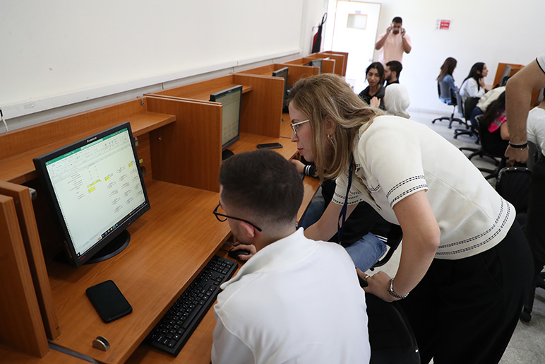 The Investment Society in the Financial Studies Department at the College of Business Administration hosted a hands-on workshop titled “Financial Statements in Excel,” led by senior students Taymaa Al Soloh, Ahmad Hijazi, and Ivans Samaan from the Finance and Banking, Accounting, and Business Information Technology Management programs.