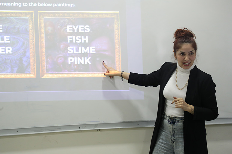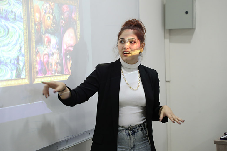 The Design Department and Design Society in the College of Arts and Sciences hosted the creative illustrator Ms. Dahlia Khodur on October 13, 2022, to discuss one of the hottest topics nowadays – artificial intelligence in art.