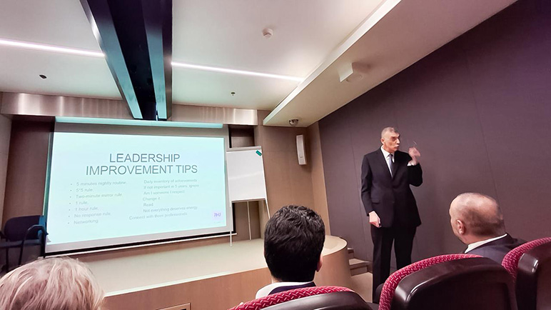 RHU President Dr. Said Ladki delivered an inspiring presentation on leadership to the CMC Hospital administrative and medical teams. His talk, “Leadership with Heart: Inspiring Purpose and Excellence in Healthcare,” provided a transformative view on leading during times of change and challenge. His visit demonstrates RHU’s ongoing commitment to fostering collaboration and excellence between Lebanon’s educational and healthcare sectors.