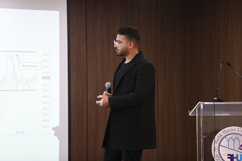 The RHU Investment Society at the College of Business Administration organized a seminar Trading and Investing 101 on March 5th, 2024, at the MEA Conference Hall. Mohammad Hammoudi, a senior finance student, stock researcher, and day trader, and Ahmad Arabi, a senior finance student, derivatives trader, stock analyst, and cryptocurrency investor, led the seminar.