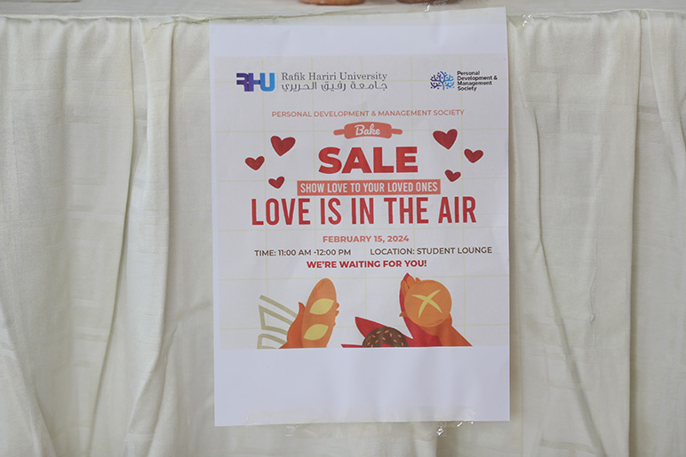The RHU Personal Development and Management Society, located in the College of Business Administration, organized a bake sale event with the theme "Love is in the Air" at the RHU student lounge on February 15, 2024.