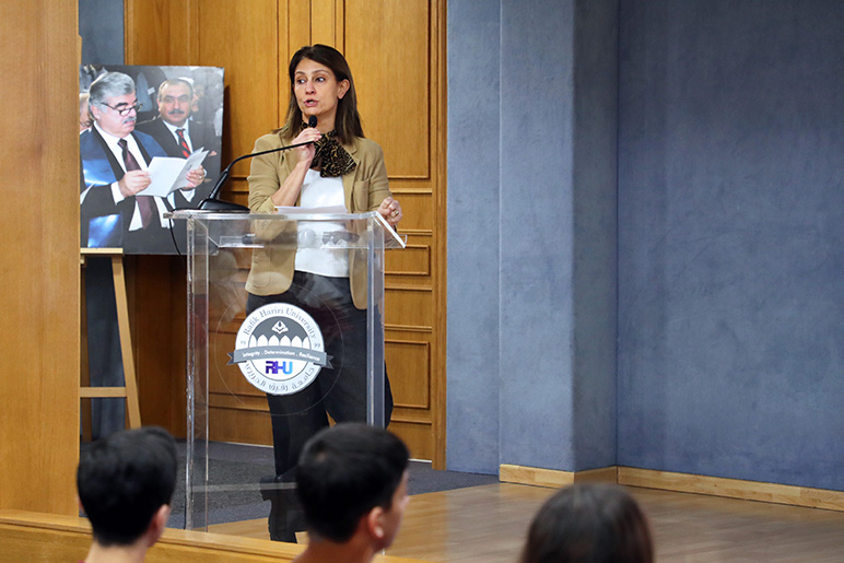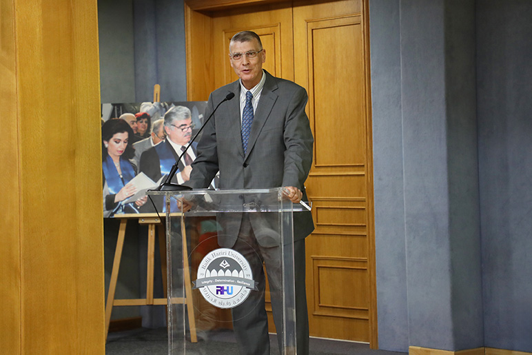 Following the president’s remarks, Ms. Zeina Tannir, Director of Admissions, delivered an engaging presentation introducing RHU’s diverse academic programs across its colleges. She guided students through admissions requirements, scholarship and financial aid opportunities, and the university’s holistic approach to education. The session provided students with clear, practical information to support their decision-making as they prepare for university life.