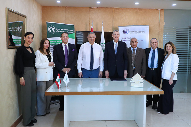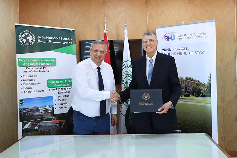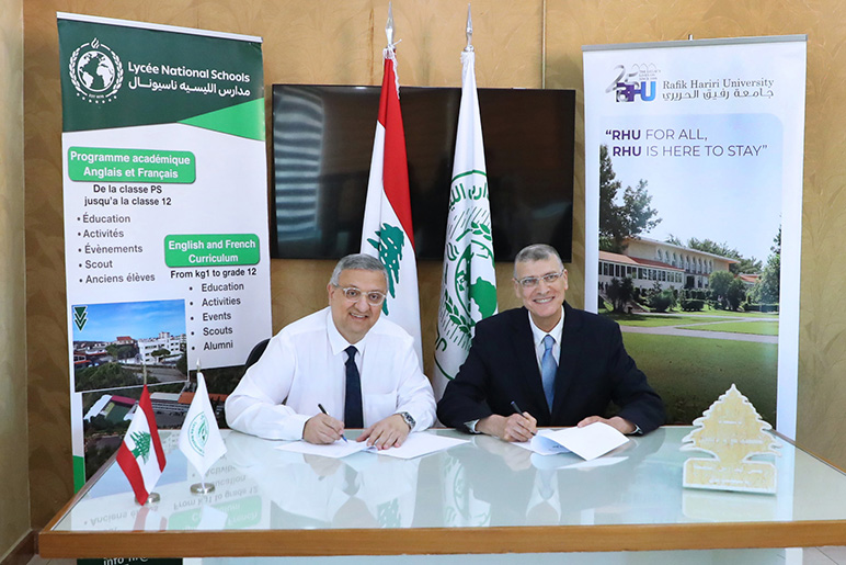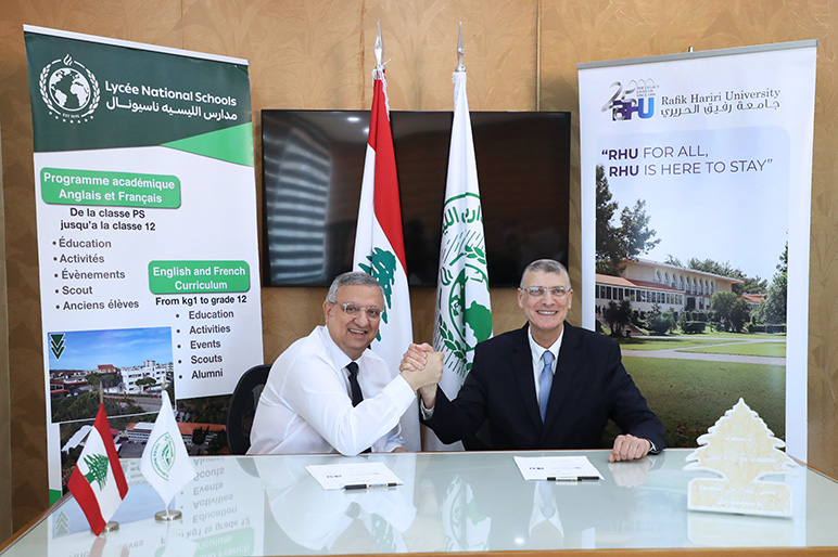 On Wednesday, April 29, Rafik Hariri University and Lycée Nationale Schools officially signed a Memorandum of Understanding, in the presence of RHU President Dr. Said Ladki and Lycée Nationale President Mr. Haitham Zebiane.